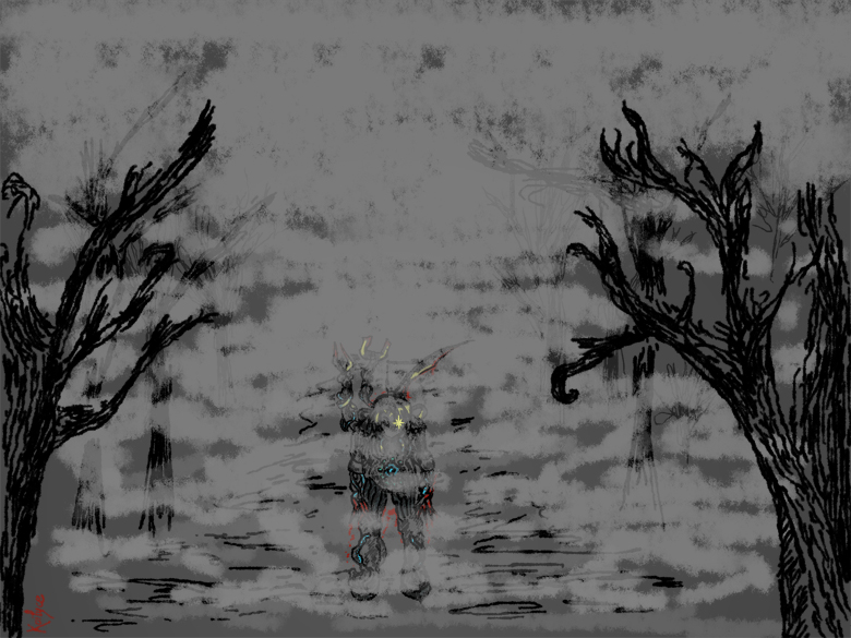 Pour rester dans le style sombre de hier, un autre dessin encore plus sombre, inspiré d'un autre des projets de BD que j'ai sous le coude pour plus tard (si vous regardez dans les dessins qui datent d'avant le défi vous devriez trouver les premiers dessins que j'ai fait de cet étrange personnage).